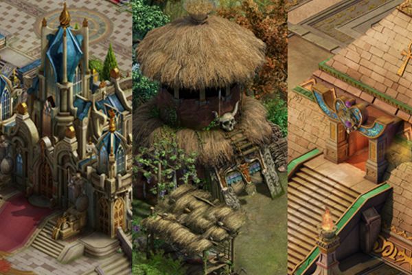 在奥加大陆上,不同地区、不同阶级、不同种族之间存在较大的文化差异。在繁华的城镇中,随处可见华丽恢弘的欧洲中世纪哥特式建筑;在原始的野外营地里,这里的人们盖起了木制的小屋和帐篷;而在炙热的沙漠戈壁里,还可以看到壮观的金字塔等古埃及时期的建筑……