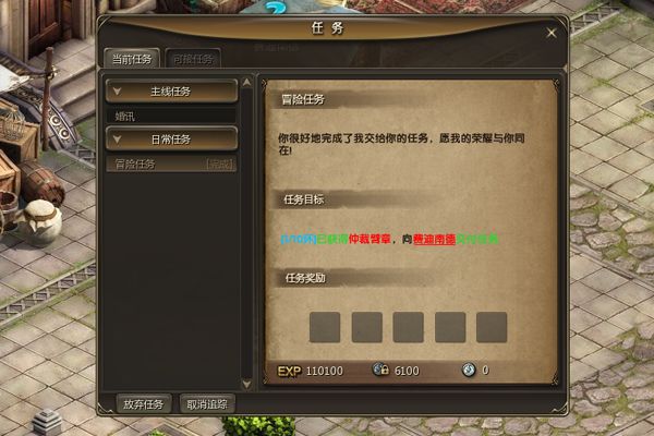 冒险任务任务简单、奖励可观,每天只需要花少许时间就可以获得经验、绑银,有助于人物提升实力。